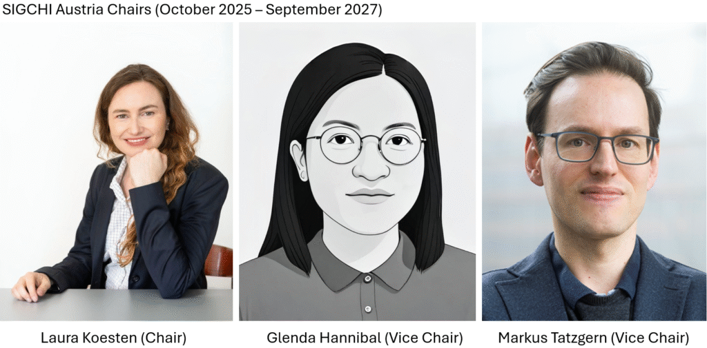 The end of the founding chairs’ 2-year term has ended, and new chairs will take over in October 2026. During our last public event in May 2025, the members voted for a new group of chairs who will continuously aim to bring our community forward. The SIGCHI Austria Chairs for the period October 2025 – September 2027 will be: